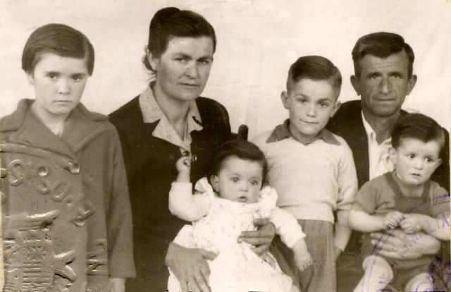 Foto familiar donde puedo reconocer perfectamente a Abilio y a Leonor, a los hijos ya es mas complicado porque son muy pequeños, pero creo que el del jersey blanco es Lino. |