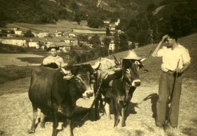 Curiosa foto. El que está delante de las vacas parece que echa en falta el sombrero. La vaca seguro que se lo agradeció. El de atrás se parece mucho a Lipe Prellezo de San Pedro. |