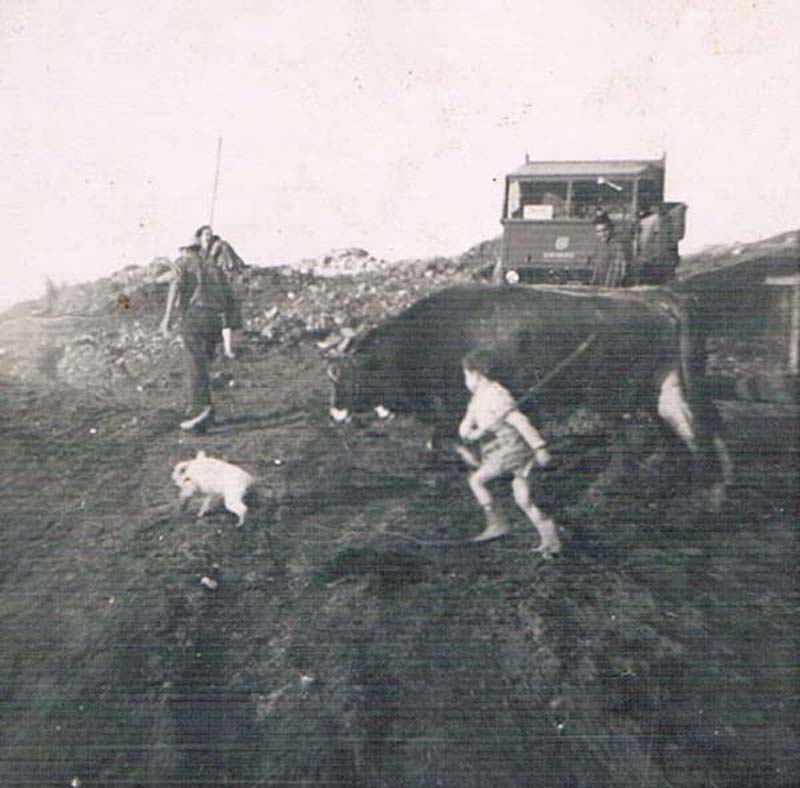 Estuve mirando un rato la foto y está muy curiosa, pero no puedo decir quienes son. Debió de ser cuando se estaba explotando la mina en Cordancas, porque la foto está hecha en el puertu. Vaya tráficu que había......, el criu se conoce que tenía ganas de atizar al perru.