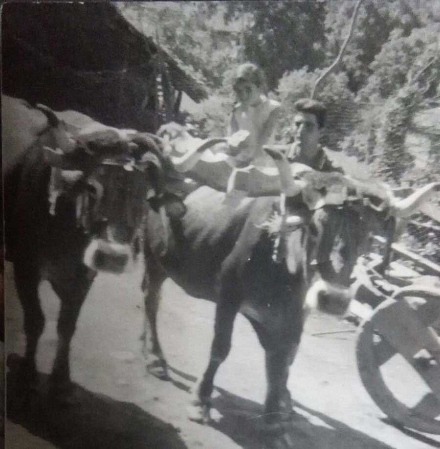 Andrés Gaipo Cortines y su hermana María Luz con la pareja de vacas tudancas