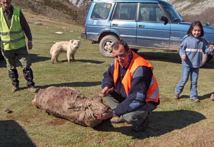 rematando a la herida y luego de otros dos disparos acabando con otra.