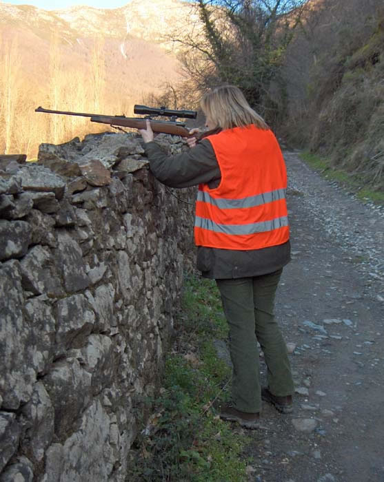 Ivana, en el preciso instante de hacer el disparo para matar a su primera venada