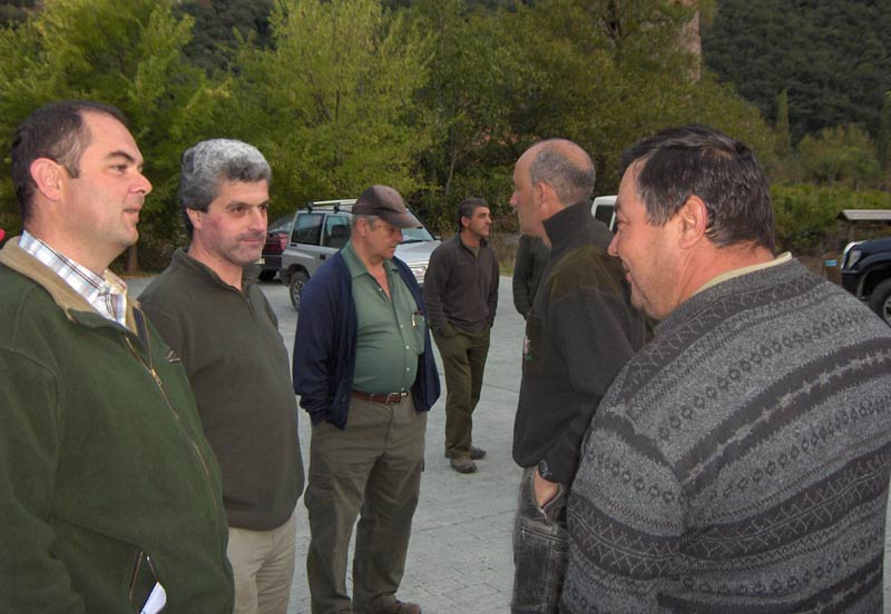 Estaba amaneciendo y ya empezaban a llegar los cazadores a la Venta de Pepín, donde Jorge les fue dando las últimas instrucciones mientras la guardería fue recogiendo la documentación de todos, para proseguir con el sorteo de los puestos. "Yo saqué el número uno.., ¿dónde me tengo que colocar?" preguntaba Manín . "Tu vas a ir junto a los numeros dos, tres y cuatro y vais a cerrar toda la zona del río por acá del pueblo de Cueva", le especificaba Jorge.