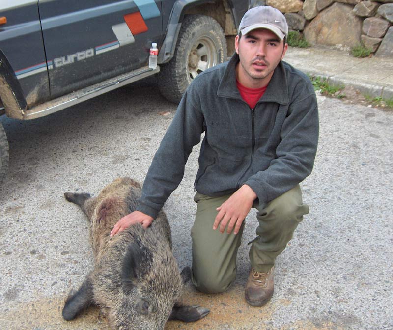 La montería seguía y Francis, el de Cosío, tuvo su oportunidad cuando vio venir hacia él un jabalí bastante bueno desde un pinar que hay por encima de la carretera de Tudes. Pero hoy no era el día de Francis ya que, aunque estaba lejos, le soltó varios disparos pero con poco acierto pues el marrano llegó a cruzar la carretera y se adentró de nuevo en el monte por encima del pueblo de Tollo. Ver para creer, que le pasen éstas cosas a Francis......