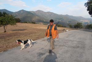 "A ver qué haceis..., que se os escapan todos los perros. Hay estar más atentos...", recriminaban los monteros a los tiradores. Pero es que este lote, ya dije más arriba que es muy estrecho y muy difícil de sujetar a los perros. Estos no saben de mojones, solo les interesan los jabalís y estos tampoco de mojones entienden mucho. Total que era media mañana y prácticamente se quedó la cuadrilla sin perros. Los pocos que quedaron aún levantaron a otro jabalí que con cuatro pasos logró salir del lote sin que nadie le disparara. Solamente le vio Angel, el de Salarzón, pero a una gran distancia, tanta que ni siquiera intentó tirarle.