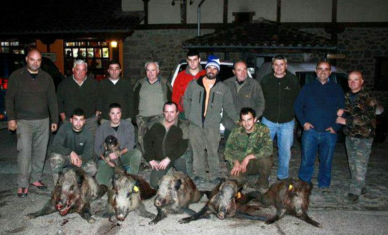 Eran las las cuatro y media de la tarde y en vista que no salía nada y que el viento arreciaba cada vez más, aparte que ya se daban todos por satisfechos, Fran les avisó que "Vamos a dejarlo, recoger los perros y nos vamos todos a Vieda a tomar unas buenas cervezas, que las tenemos ganadas". De sobra que las tenían ganadas, felices y contentos terminaron todos la jornada cinegética con los cinco jabalís en los remolques.