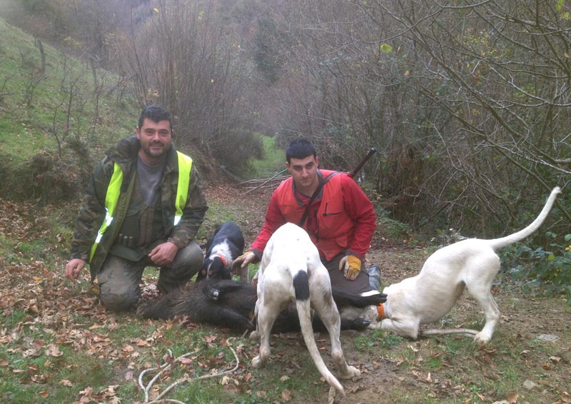 "Bueno, venga coger los perros, vamos a ver si cobramos el jabali de Elias, cuando bajemos al bar hay que escotar pa compraros unas dianas", les decía el jefe de la cuadrilla que hizo el siguiente resumen: "Al final se hizo de noche y nos fue imposible cobrar el jabali, y nos tuvimos que conformar con cuatro marranos. Esperábamos bastante mas, pero bueno, no todos los días son fiesta.