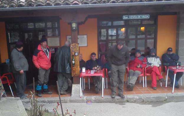 Mientras se presentaban las acreditaciones en el Mesón de Vieda y se sorteaban los puestos, Jorge, el jefe de la cuadrilla, les iba informando de cómo se iba a desarrollar la cacería. "Vamos a echar la parte alta del lote que es donde están los jabalís. Estuvimos echando un vistazo al monte y se ven bastantes rastros, así que vamos a despedir bien la temporada. Los puestos van a cerrar desde el Collau Perejita hasta la praería de Tormes y por la riega que baja al puente de San Cosme, en la carretera que sube a Buyezo. Por la tarde echaremos la parte de abajo."