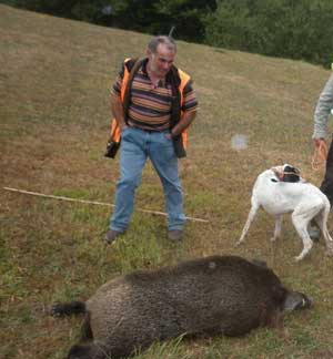 Era ya mediodía y después de un pequeño receso, Jorge mandó cambiar algunos puestos para echar la zona que va de Colio, pasando por Lobia hasta encima de Cabañes. No salieron muchos jabalís, únicamente uno que le salió a Ceci. El jabalí le vino por atrás, por debajo de la carretera que va a Pendes. Cuando Ceci quiso reaccionar le soltó un disparo, pero el jabalí se adentró en un pinar y puso pies en polvorosa.