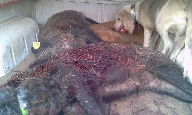 Era ya la hora del cierre y todos bajaron contentos y felices hacia La Viñona con los dos jabalís en los remolques.