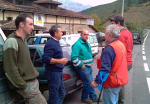 Había muchas ganas y divertidos ánimos en Vieda entre los componentes de la cuadrilla 31. Hoy hay que cazar en Dobra el Mazo que para los no entendidos diré que está por la zona de Cabezón de Liébana hasta Aniezo y Torices. Digo que había buen ambiente debido a que es una cacería donde siempre salen jabalís, así que Juan Carlos, como jefe de la cuadrilla, fue explicándoles por dónde debían colocarse los tiradores: "Vamos a cortar por la riega de Valtorín y por toda la pista que va desde Aniezo hasta Perejita. Los monteros vamos a entrar por la zona de Cambarco. Estuvieron ayer viendo el monte y por lo menos jabalís hay bastantes, ahora nos toca a nosotros darles caña".
