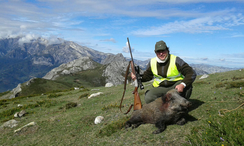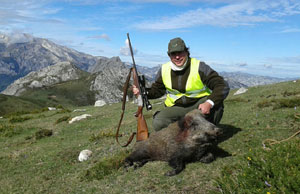 Pese a recibir un buen susto a primera hora de la mañana cuando tuvo al oso a diez metros de distancia, a Santi no le afectó para nada al pulso cuando se le puso delante un jabalí. En esta ocasión no tuvo necesidad de vocearle para que se apartara, un único y certero disparo fue suficiente para acabar con la galopada del jabalí.