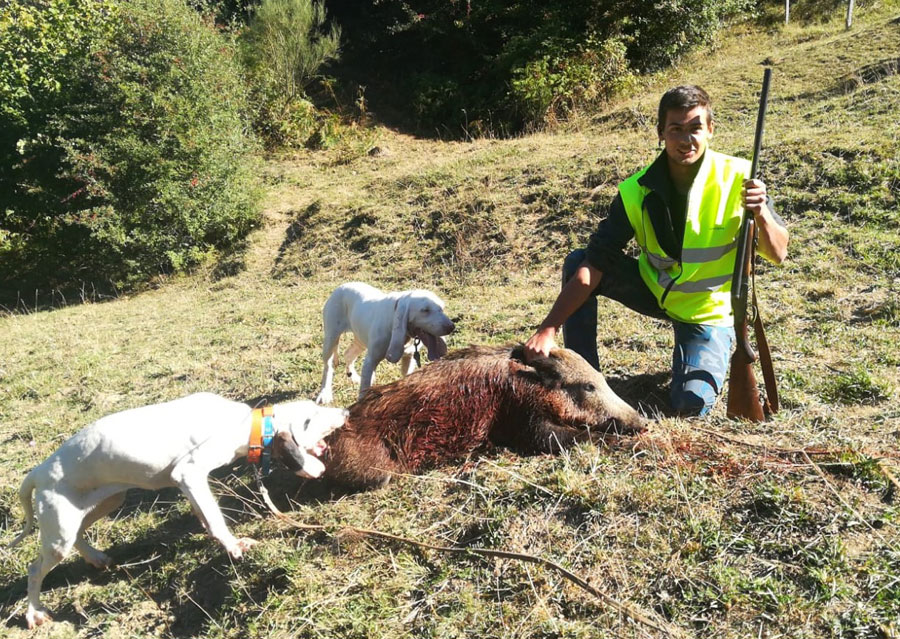 No pasó mucho tiempo para oírse nuevos disparos. Por debajo de Arceón, en Verés, estaba hoy Chico, que disparó por dos veces para parar a un jabalí. El marrano rodó unas vueltas, pero logró ponerse de nuevo de pie y siguió su marcha, aunque muy mermado. Un poco más arriba estaba Iván, un invitado, que solo tuvo que rematarle.