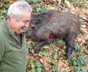 Por encima de Casillas, los perros de David cogieron demanda y sacaron de su escondite a un jabalí que emprendió una veloz carrera. No muy lejos de allí estaba el propio David para pararle los pies. “Aquí le tengo patas arriba”, avisaba el montero.