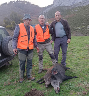 Era ya la hora de cierre cuando suena un disparo. “¿Qué pasó ahí arriba?”, preguntaba Chanchel. “Que acabo de matar un jabalí, no es muy grande, pero ya tenemos el cupu”; el que así hablaba era el montero Emilio Gómez, de Pumareña, que se le presentó el marrano cuando ya el jefe de cuadrilla iba a anunciarles que no hicieran más disparos. Costó lo suyo, pero en el último segundo se logró el cupo de seis jabalís.