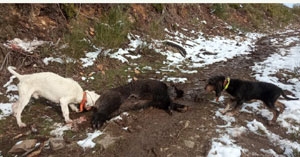 Cuando entraron en acción los monteros no presagiaban la presencia de jabalís. Vueltas y más vueltas, para arriba y para abajo, derecha e izquierda y los jabalís no aparecían por ningún lado. El tiroteo que se había originado momentos antes, dejó el lote completamente mudo, únicamente las quejas de algunos cazadores, quejándose del frío. “Hace muchísimu friu y no tengo tientu en las manos…...”, se oía por la emisora. En realidad tenían razón en quejarse; aunque ya lucía el sol, hay zonas donde el sol no entra y cuando se está ya rozando los dos mil metros de altura, el frio se dejaba notar.