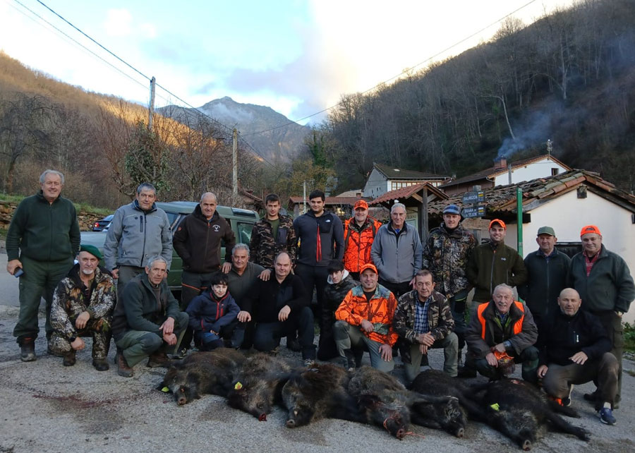 Una vez colocados los puestos entran en acción los monteros y pronto suenan los primeros disparos. En Cantu Pinau estaba hoy de puesto Primo que se quedó asombrado al ver asomar un rebaño de jabalís que subían de la parte de Llandelestal. “No sé los que eran, no los conté, pero pasaban de seis”, comentaba luego el cazador. Primo los esperó, pero solamente uno de ellos tuvo la osadía de acercarse al cazador que necesitó un par de disparos para ver al marrano dar cuatro saltos y quedar allí tieso. Era el primero de una soleada mañana. De los restantes nadie supo más, posiblemente se meterían a resguardo entre los peñascos del Canchalón.