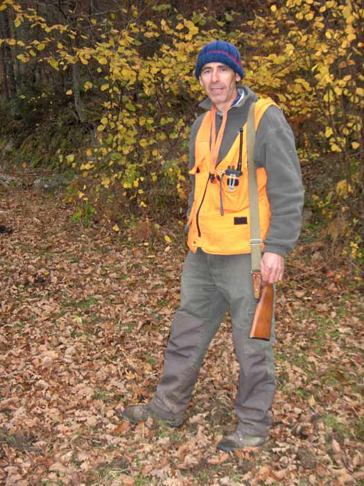 Pero siempre hay algún despistado (me refiero a un jabalí), que no necesitó el empuje de los perros y salió de su encame llegando hasta donde estaba Primo, que le vio retirarse de lejos. Primo le tiró antes que el marrano se escondiese en el monte, pero hoy Primo no tuvo el acierto de otros días y el jabalí la emprendió monte abajo. “Le tiré, pero estaba muy lejos y no le di”, avisaba el cazador.