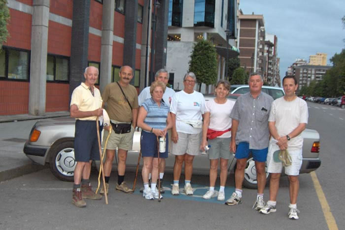 Componentes del grupo que hizo la ruta Gijón-Covadonga andando (80 kms.) los días 7 y 8 de Junio de 2.005.De izquierda a derecha: Manolo, José Angel, Maruja, César, Belén, Ana, Jesús Eladio y Arcadio