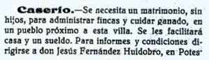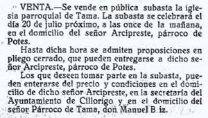 Proclamas Han sido leídas las amonestaciones para contraer matrimonio los simpáticos jóvenes Miguel Pérez, de Aniezo y Florencia Agüeros, de Cabañes. La Voz de Liébana, nº 859 de fecha 15 de Setiembre de 1928 |