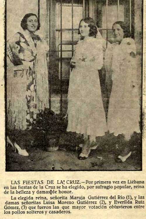 Asi continuó el momento electoral y por la persistencia de los muchachos pensamos en que iba a hacerse necesario elevar una protesta a la Junta del Censo, pero al fin se impuso la serenidad y con el mayor orden comenzó la votación. El escrutinio fue otro momento interesante: leía el alcalde el nombre de una chica y en el corro de muchachos se oia un suspiro o un comentario, cuando no era un requiebro con apostilla. Comenzaron a salir nombres. Maruja Gutiérrez, María-Luz González, Luisita Moreno, Alegría Lobejón, María Luz Monasterio, Evenilda Ruiz, Isabel Almirante, Paulina Gómez Ozores, Rosita Serdio, María Luisa Cuevas, etc., y la emoción de los jóvenes iba en aumento y al terminar el escrutinio estalló una ovación en honor de las que mayor número de votos obtuvieron, las bellísimas señoritas Maruja Gutiérrez del Río (Nota: Su padre nació en Esanos), Luisita Moreno y Evenilda Ruiz, quedando proclamadas reina de la belleza la primera, y damas de honor las otras dos. Fueron las que mayor votación obtuvieron entre los pollos solteros y casaderos. La Voz de Liébana, nº 930, de fecha 30 de Setiembre de 1931 |