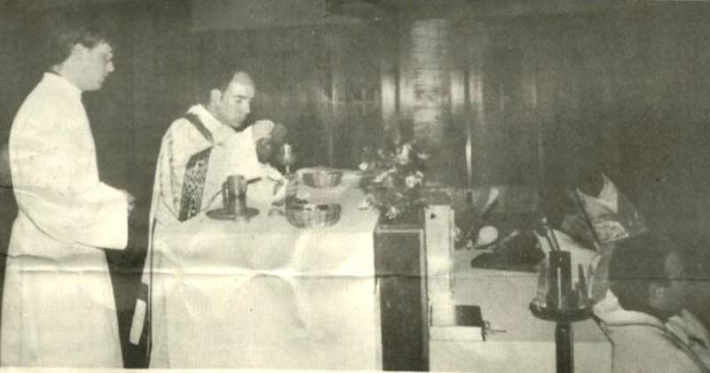 La misa fue concelebrada por 30 sacerdotes, presidiendo el Sr. Obispo de la Diócesis don Juan Antonio del Val, quien después del Evangelio, en su preciosa homilía, expuso la misión del sacerdote, segregado del mundo, para una misión dentro del mundo, espiritual, de fraternidad, concordia y amor, pero colaborador del Obispo y siempre unido a la Jerarquía.