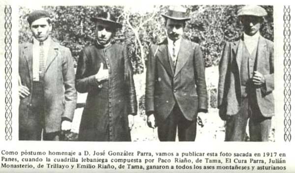 Nuestro adiós al cura Parra Ya en Luz de Liébana de Abril, autorizadas plumas dedicaron un recuerdo al reverendo don José González Parra. No obstante, el corazón me ordena escribir unas palabras que puedan servir de humilde homenaje al Cura Parra. ¡Cuántas veces don José me advirtió cariñosamente: “Nel, que soy GONZÁLEZ PARRA”!, pero los bolísticos que, el día de su entierro estuvimos todos allí, le conocíamos por el “Cura Parra” y como dijo el señor Obispo en la homilía “siempre respetable y respetado”. Compuso, como el también finado don Julián Revilla y don Juan Alonso, el trío de grandes ases bolísticos con sotana, que tuvo Liébana y que fueron la admiración de todos. Descanse en paz. Nel Luz de Liébana, nº 244 de fecha Mayo de 1981 |