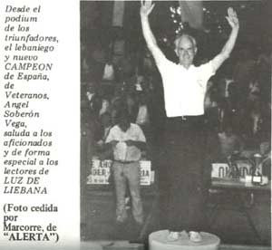 EL LEBANIEGO ÁNGEL SOBERON, NUEVO CAMPEON DE ESPAÑA (BOLOS) NUESTRO paisano, Angel Soberon Vega, de Bedoya por más señas, afincado desde hace años en Madrid, conquistó días pasados en Sarón, el título de Campeón de España de Veteranos y de paso consiguió establecer un nuevo record, con 685 bolos. Puedo calificar a Soberón entre los que trabajan, pues para mantenerse en forma hace falta sudar mucho. Sólo con señalar que ya en 1.944 fue Campeón provincial de Cantabria, Segunda Categoría, en las olvidadas boleras de San Martín, queda dicho todo. Claro que, quien tuvo y retuvo, siempre guardó algo. Triunfos en Santander, Liébana México….. y ahora en Madrid. En 1.979 ganó el título de Campeón de Segunda, de Castilla. Después, en 1.980, obligado a jugar en Primera (muchos metros de tiro para su edad) se clasificó en el segundo puesto del campeonato castellano. Por último, en 1.981 (37 años después de aquel primer título) se proclamó Campeón de Castilla de veteranos, batiendo la marca existente en Madrid con 653 bolos. Y culminó su hazaña con éste Título de España y ése record de 685 bolos, alcanzado en Sarón, que con tanta alegría todos aplaudimos. Supongo que don Juan Alonso, cura de Tama, lo celebrará especialmente, pues con él formó, allá por los años cuarenta, una de las más temidas parejas. Enhorabuena Campeón…..!. Luz de Liébana, nº 247 de fecha Agosto de 1981 |