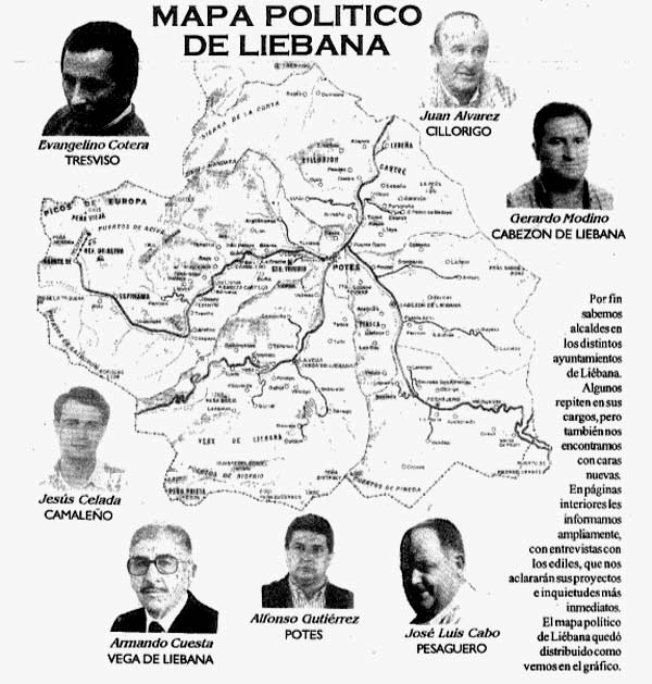 Resultado de las Elecciones Municipales Alcalde de Potes: Concejales de Cillorigo: Concejal de Cabezón de Liébana: Luz de Liébana, nº 356 de Junio de 1995 |