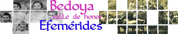 Coincidiendo con el décimo aniversario de ésta web, abro hoy un nuevo capítulo dedicado a las efemérides ocurridas en diferentes épocas relacionadas principalmente con el valle de Bedoya. Una efeméride es un hecho relevante, una celebración o un episodio para ser recordado y conmemorado en un determinado día, pero en años diferentes. Es como un aniversario, pero aquí no me voy a fijar en recordar tales acontecimientos en fechas señaladas, las iré detallando según caigan en mis manos.