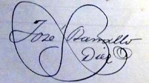 “En quinze de Diciembre de mil setecientos setenta y siete paso de esta vida a la eterna Dn Jose Ferndez de Herrera cura de la parrochial de Sn Martin de este concexo de Biñon= recibió los santos sacramentos de Penitencia y Extrema Uncion= hizo testamento remitiéndose al que hizo Dn Jose Santos Ferndez de Herrera su tio, cura que fue de este lugar el que otorgo en testimonio de Thoribio Garcia de Hoyos en primero de septiembre de mil setecientos i quarenta del qual resulta haber mandado asistiesen a su entierro, el dia del Novenario i cabo de año doce sacerdotes y se ofreciese en cada uno de dichos tres días sobre su sepultura un quarto de trigo, una cantara de bino i un carnero de dos años, i a los siete días del entierro al novenario se le dijese misa y vigilia cantada i se ofreciese en cada uno de dichos días dos panes con el compango acostumbrado, i lo mismo los Domingos i fiestas por espacio de dos años contados del dia de su fallecimiento= i que por los mismos dos años se mentase su anima los Domingos= i que durante este termino se digesen por su anima trescientas misas i se pagase por la limosna de cada una de ellas dos rrs. = i además mando se le dijesen dos oficios, uno en el Convento de Sn Raimundo y otro en el de Sto Thorivio ambos en esta provincia i se diese de limosna veinte i dos rrs= i no dejo otra cosa de deba ser anotada i para que conste lo firmo como Theniente de cura que soi en dicho lugar dicho dia mes i año dichos. D. Antonio Francº del Peral Duque”. (Rubricado). Libro de finados de Viñon pag. 45