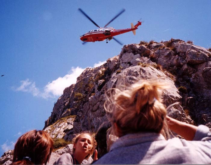 El rescate deparaba peligro por la proximidad de las rocas y el fuerte viento reinante en la zona.