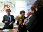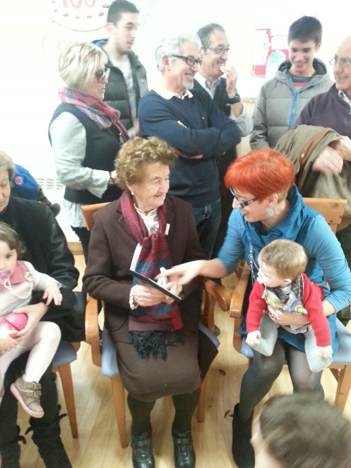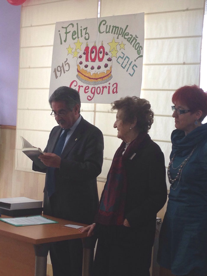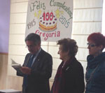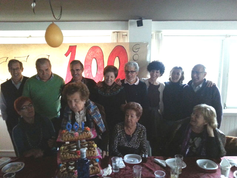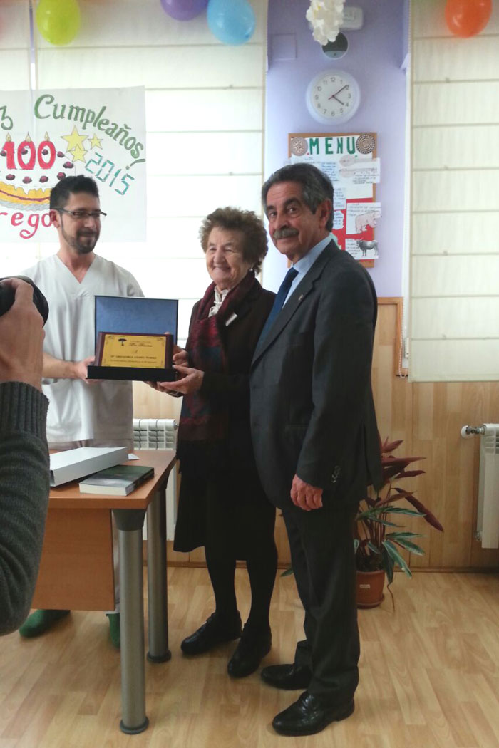 Presentación en Potes del libro "Cien años de lucha" de Adolfo Cuevas El pasado sábado, día 21 de febrero, tuvo lugar en el Centro de Estudios Lebaniegos de Potes la presentación del Libro "Cien años de lucha", de Adolfo Cuevas Cosío, nacido en el pueblo de Esanos y en la actualidad residente en Bilbao. El libro trata sobre la vida de Gregoria Cosío, madre del autor, que el próximo mes de Marzo cumplirá los 100 años, de ahí el título de la obra. Cerca de cincuenta personas se reunieron en la sala del Centro de Estudios, donde la sobrina del escritor, Elisa Pérez Cuevas, nos presentó a su tío en sus variadas facetas de artista, resaltando la de escritor, que era la que hoy nos reunía aquí. Así mismo, Elisa nos detalló muchas vivencias de la protagonista del libro, su abuela, realizando a continuación una interesante entrevista a su tío. Posteriormente, fue Adolfo quien nos detalló cómo se animó a plasmar en un libro la vida de su madre, una madre que se quedó pronto viuda y tuvo que padecer múltiples sacrificios para educar a sus ocho hijos. "Yo cuento la vida de mi madre, pero ésta misma historia, o muy parecida, es la misma de muchas madres que les tocó vivir en los tiempos difíciles de antes de la guerra y luego en la postguerra. Fui recogiendo documentación y pronto me di cuenta que no lo podía resumir en un solo tomo, así que tomé la resolución de hacer dos libros. En este primer tomo, la acción se desarrolla en el valle de Polaciones, que es donde nació mi madre. En Potes, donde vino a servir con diez años y en el valle de Bedoya donde vivió, una vez casada, durante trece años". El libro cuenta con 384 páginas, 47 imágenes de fotos y un árbol genealógico de la familia. Al finalizar el acto, Adolfo firmó el libro a todos los que se acercaron a adquirirle. El día 31 de marzo de 2015 Gregoria Cosío Torre celebró en el pueblo que la vio nacer, Puente Pomar, sus "primeros " 100 años, acompañada de sus hijos, nietos y bisnietos. No quiso faltar a la cita Miguel Angel Revilla, a quien la madre de Goria ayudó a nacer. Este relato, muy bien descrito por Fito en su libro "Cien años de lucha", fue leído por el mismo Revilla, entre los aplausos de la concurrencia. Felicidades...... (Pincha en las fotos para agrandarlas)