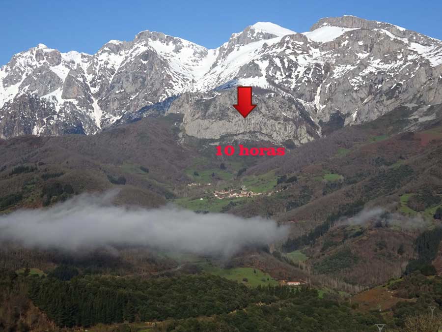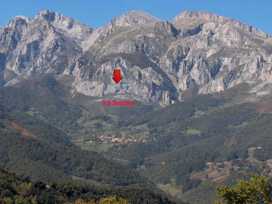 Hay caballos de carne y hueso, de metal, de potencia, de madera, de cartón, de piedra, pero también hay caballos-reloj, como el que vemos todos los días desde el valle de Bedoya. Bueno….., diré que solamente los días que luce el sol, ya que éste caballo-reloj es un tanto original: no necesita darle cuerda, ni pilas, no tiene agujas, ni minutero, ni segundero. Hasta hace no muchos años, pongamos que 50 ó 60, los relojes en Bedoya eran tan escasos que pocos eran los vecinos que disponían de ellos. Para paliar ésta carencia, nuestros antepasados se guiaban por una sombra que aparece en Los Picos de Europa, por encima del pueblo de Colio. Dicha sombra se asemeja a la figura de un caballo con un jinete encima de sus lomos. Cuando la silueta está debidamente formada, es la una de la tarde, es el mediodía, hora de dejar los trabajos y partir para casa a comer. Pero el caballo aparece cuando luce el sol, así que los días que “Lorenzo” no tiene ganas de levantarse, tanto jinete como caballo también interrumpen su cometido tomándose un descanso. ¡ Pobre caballo y jinete..…..!, tanto trabajo y tanta penuria cabalgando por los Picos, que bien merecen un respiro. Aquí puedes observar varias fotos del "caballo" en diversas horas del día. (Pincha en las imágenes para agrandarlas) |