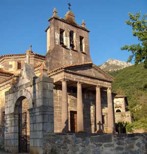 Esta iglesia es un claro ejemplo de promoción indiana, una excelente edificación tardobarroca, cuyas obras se inician en 1816 tras la guerra de la Independencia y que vino a sustituir la primitiva iglesia gótica que se encontraba en ruina, dedicada también a San Juan Bautista. Formando parte de la tradición medieval, la nobleza había logrado el patronazgo de ciertos espacios religiosos, como es este caso en el que D. Vicente Gómez de la Cortina, II conde de dicho apellido, y su hermano D. Pedro Gómez de la Cortina, Chantre de la catedral de México y catedrático de matemáticas la Universidad de esa ciudad, logran permiso para erigir el templo y a su vez un panteón familiar. El primer conde era tío de los susodichos originario de Cosgaya, en donde construyó la escuela y la iglesia en 1793. Reside en México, donde su única hija contrajo matrimonio con su primo, quien tras emigrar se hace cargo de la hacienda familiar, su unión posibilita que el apellido del I conde acompañe al título nobiliario. Título otorgado por el Carlos III en 1782, en pago de los muchos servicios prestados a la real hacienda por su tío D. Servando Gómez de la Cortina. La familia del II Conde asume la realización de la iglesia parroquial de Salarzón como una cuestión de primer orden, y a la misma dedicarán muchos recursos y en la cual van a participar casi todos. Un grupo familiar que es recogido en un lienzo conservado en la Casa-palacio, que se erige en la misma época en las proximidades del templo. El retrato de familia recoge al matrimonio D. Vicente y Dª María Ana Gómez de la Cortina Rodríguez de Pedroso, II Condesa de la Cortina y sus cinco hijos Dª María de Jesús (al piano), D. José Maria Justo (III Conde de la Cortina), D. Mariano, D. Joaquín (el futuro I Marques de Morante, entre los brazos de su padre) y Dª María de Loreto. EL PROYECTO Atribuido a D. José María Justo Gómez de la Cortina, joven formado en la Academia de San Carlos en México, quien ingresa como cadete de la Academia de Zapadores de Alcalá de Henares (Madrid). Y ésta se evidencia en cuadro familiar, donde está manejando un plano con la leyenda “Plano para La iglesia que se ha de Labrar en el Lugar de Salarzón, Valle de honor de Bedoya, provincia de Liébana''. El proyecto adopta el canon de la época, que hoy en día denominamos neoclásico, estilo que busca la simbiosis de la pureza arquitectónica clásica y la funcionalidad constructiva moderna, unidas al empleo de materiales de calidad en las edificaciones que proyecta. EL EDIFICIO Dispone de planta casi cuadrada formada por cruz latina inscrita en un rectángulo, cuenta con una cúpula central y ocho estancias que subdividen el templo. La fachada principal presenta pórtico con cuatro columnas toscanas. Estructuralmente el templo requiere de una importante obra de fábrica, en base a muros de sillería en el interior y el muro oeste, así mismo en los esquinales y vanos del exterior, siendo el resto realizado en mampostería. Templo singular tanto por sus características arquitectónicas, como por quienes hicieron posible su construcción dentro del hermoso valle de Bedoya, frente al macizo oriental de los Picos de Europa. El conjunto dispone el presbiterio orientado al este, anexo al cual se disponen dos estancias simétricas unidas por ventanas, al norte la capilla funeraria de los Gómez de la Cortina y en el lado de la epístola la sacristía. La parte central acoge la cúpula y dos capillas laterales, resueltas por medio de arcos de medio punto y se rematan mediante una cubierta con bóveda de cañón. Al oeste en el centro el acceso al templo y anexas las estancias que unidas por puertas dan acceso al bautisterio y al coro alto. Las estancias de las esquinas se cubren con bóvedas de crucería separadas por un arco de medio punto. LA CÚPULA La bóveda semiesférica vertebra el tramo central del templo. Y en si misma constituye una novedad respecto a la forma tradicional en construir las cubiertas de las iglesias lebaniegas. El modelo se adopta por la iniciativa de los indianos, caso de las parroquias de Valdeprado y Cosgaya que se realizan a expensas de D. Juan Domingo de la Torre y de D. Servando el I conde de la Cortina, respectivamente. La cúpula de San Juan Bautista de Salarzón está construida por un cimborrio central que dispone de ocho nervios de buena sillería y tiene sus paramentos revocados, el conjunto reposa sobre un anillo o tambor en su parte interna, y en el exterior presenta una planta octogonal, tiene cuatro linternas que dan luminosidad al templo. LAS CAPILLAS Los tres retablos del templo son neoclásicos y fueron realizados en la misma época que la iglesia, pero se ha perdido la imaginería original, salvo un cristo de la capilla de la Epístola. Destaca en el altar mayor la cancela en bronce del sagrario, con la resurrección de Cristo. Otra pieza de excelente factura es la imagen sedente en bronce de San Juan Bautista, empleada tradicionalmente para procesionar al santo en su onomástica. CAPILLA-PANTEÓN DE SAN VICENTE FERRER Como expresa la inscripción en el dintel de acceso “ESTA CAPILLA PERTENECE A LA CASA Y FAMILIA GÓMEZ DE LA CORTINA SALCEDA Y MORANTE AÑO DE 1819”. La capilla presenta un sencillo retablo en cuyo cenit se dispone un sol dorado central, bajo el cual destaca un blasón policromado y orlado con atributos militares, son las armas propias del II Conde de la Cortina. Bajo el escudo un retablo formado por dos columnas de orden compuesto, en él se inscribe un gran lienzo alegórico de San Vicente Ferrer, pintado en México por la hija mayor Dª María de Jesús en 1817. EL EXTERIOR DEL TEMPLO El exterior presenta diferentes volúmenes en fachada y cubierta. La fachada principal en un lienzo de buena sillería, en el centro tras el pórtico la única puerta, flanqueado por ventanas rectangulares que como el resto del templo cuenta con recias rejas de forja. La fachada principal sustenta a s
